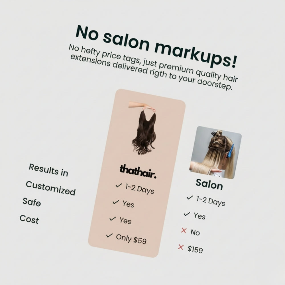 Not at all. Our ThatHair Halo is 100% damage-free. No clips, glue, or heat required. It simply sits comfortably on your head, protecting your natural hair while enhancing it. Unlike salon extensions, there’s no pulling, tugging, or strain on your roots. Just volume and length, minus the damage.